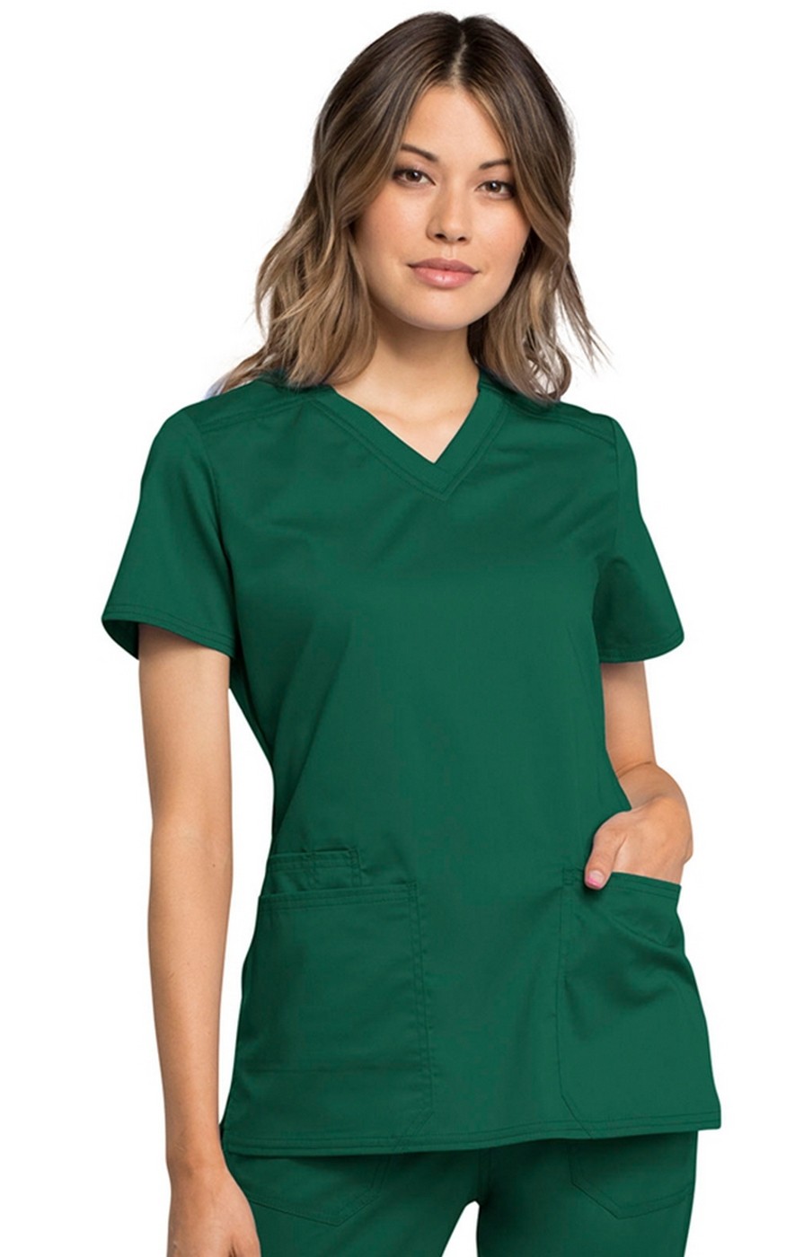 Our basic V-neck top is a medical wardrobe staple, featuring a rib-knit neckband and back panels for comfort and ease of movement. Two large patch pockets at the front provide ample room for storage. Modern Classic fit. Center back length: 26"