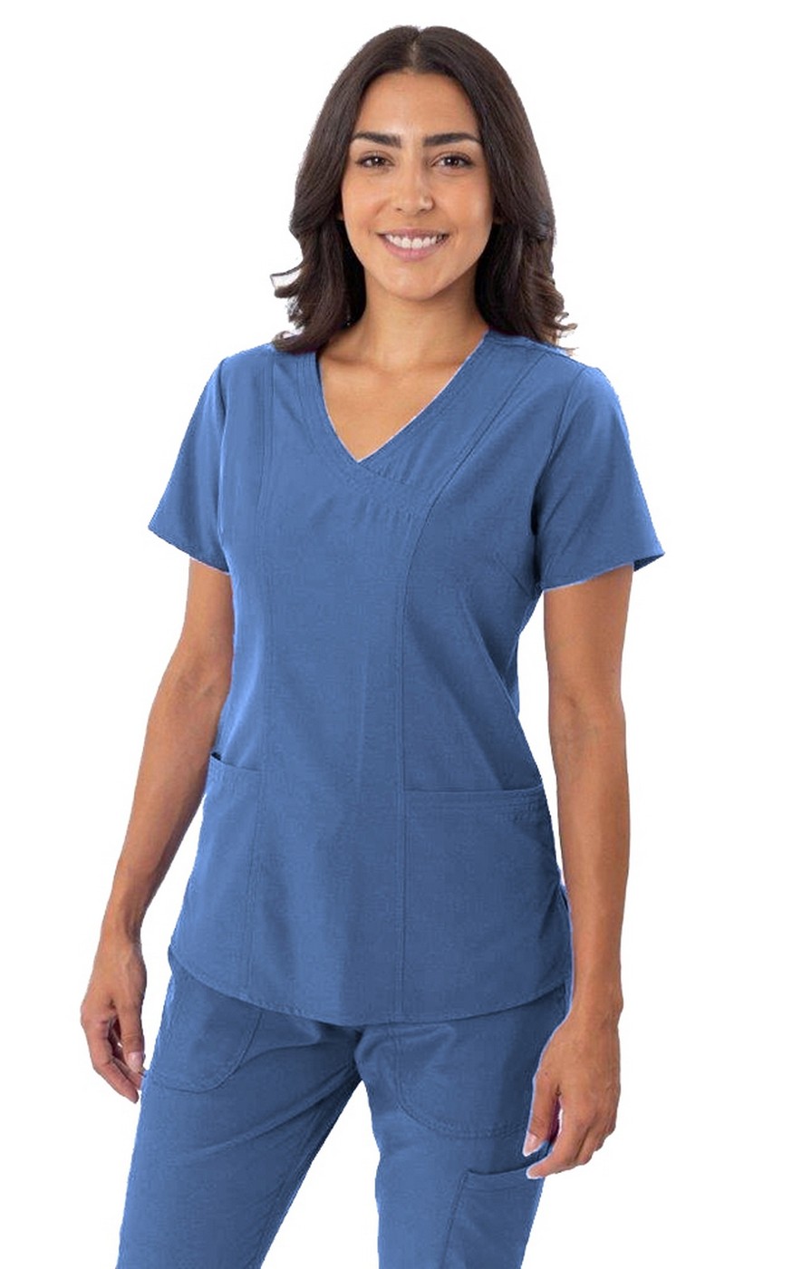 The Greentown Zinnia collection is designed for the professional who wants a tailored, feminine look without sacrificing mobility. Featuring an elegant sweetheart neckline and contoured princess seams, this top provides a flattering silhouette while the premium 4-way stretch fabric ensures total comfort during active shifts.