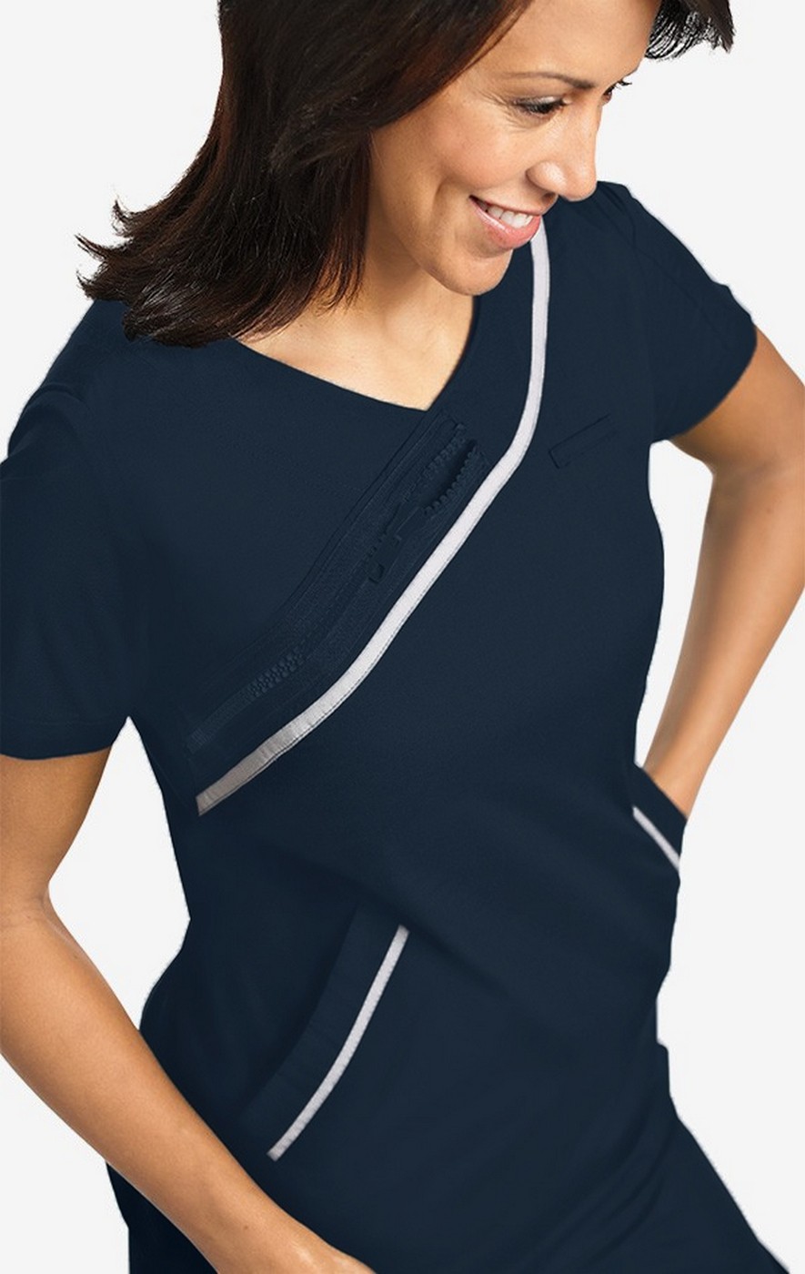 *FINAL SALE 530T Navy Reflector Trim Detail Scrub Top by MOBB