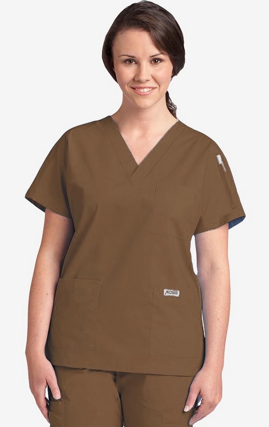 *FINAL SALE BROWN 310T MOBB Classic Unisex 3 Pocket Scrub Top
