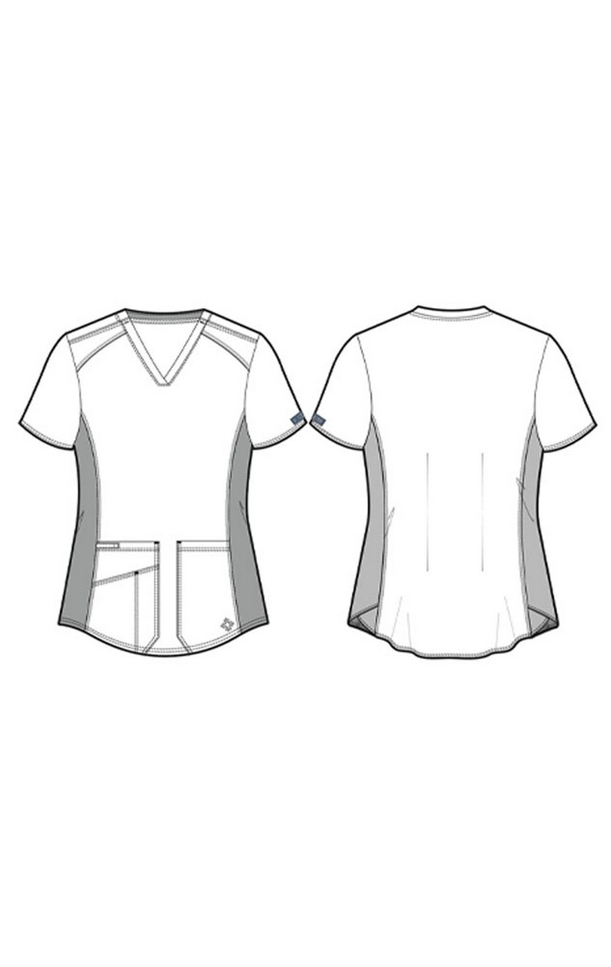 Designed to fit and flatter all body shapes and sizes, this scrub top is everything you want in scrubs and more. A simple silhouette is enhanced with the addition of a classic shirttail hem. Knit side panels add comfort and ease of movement, while their overlapping design adds sporty flair.