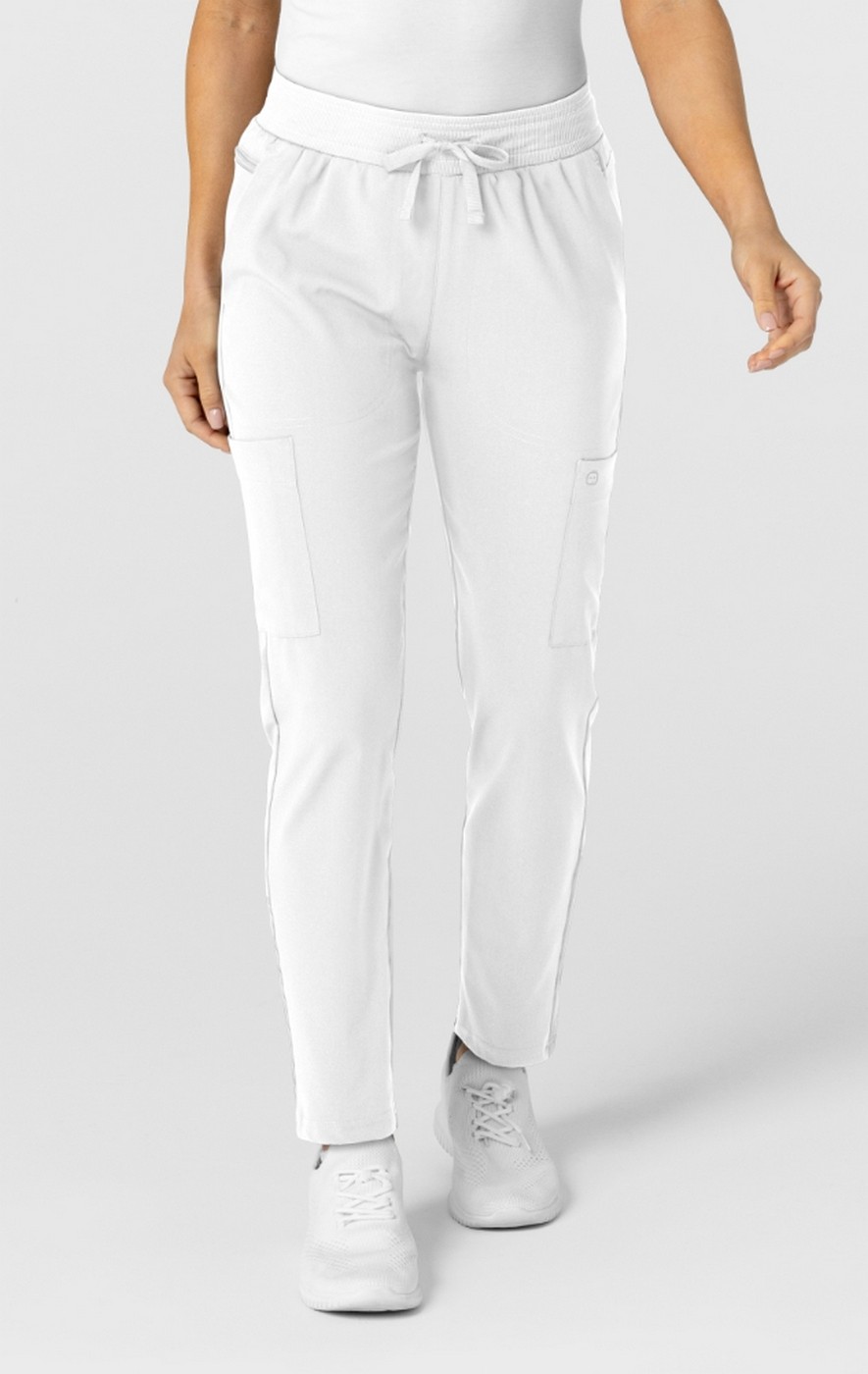 Designed for unparalleled comfort and mobility, our Wink Women's Flex-n-Reach Track Scrub pants will become your new workwear essential. Crafted with a luxurious four-way stretch fabric, they feel as cozy as your cherished yoga leggings. The jogger-style cut, with knit inserts at the calf, allows you to move freely, ensuring every task is a breeze. Say goodbye to restrictive work attire, thanks to our innovative Flex-n-Reach panels strategically placed to provide extra stretch where you need it most. A knit waistband, complete with an adjustable drawstring, offers all-day comfort, so you can focus on your job, not your attire. With a multitude of pockets, including cargo and utility loops, your essentials are always within reach. Stay organized and ready for action as you conquer your day. Experience unmatched style, comfort, and practicality with the Wink Flex-n-Reach Track Scrub Pant. Work never felt this good.