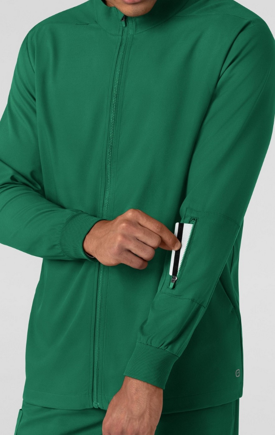 The offices and buildings you work in can be unpredictable when it comes to temperature, which is where this men's warm-up jacket comes in. Layer it over your scrub top anytime you need additional comfort to stay warm, focused and feeling good. It also delivers an extra place to store tools and essentials while your fast-paced shift moves along. Two front pockets let you warm your hands or keep must-haves by your side, while one sleeve card pocket with a zipper secures smaller items. Hold your tablet in a generous pocket on the inside, designed to provide hands-free mobility as you're editing patient charts or preparing for appointments. The full-zip front is all about versatility, giving you options when temperatures fluctuate from room to room. Ribbed cuffs draw the silhouette in for a modern profile that stays cozy. Because when you're comfortable, you're able to do your best work.