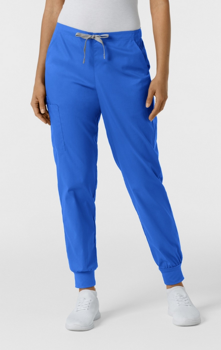 Step into ultimate comfort and functionality with these women's cargo jogger scrub pants. Made for the busiest days, these joggers are crafted from 360-Degree Motion Stretch fabric that moves with you, so you’ll never feel restricted. With a flat front and adjustable drawstring, they’re designed to stay comfortably in place through every task. Keep essentials close at hand with strategically placed pockets: two front slant pockets, a spacious cargo pocket, a dedicated cell phone pocket, a pen slot, and two back patch pockets. The self-fabric elastic back waistband and knit jogger cuffs complete the look, blending utility with style for a flawless fit every shift.
