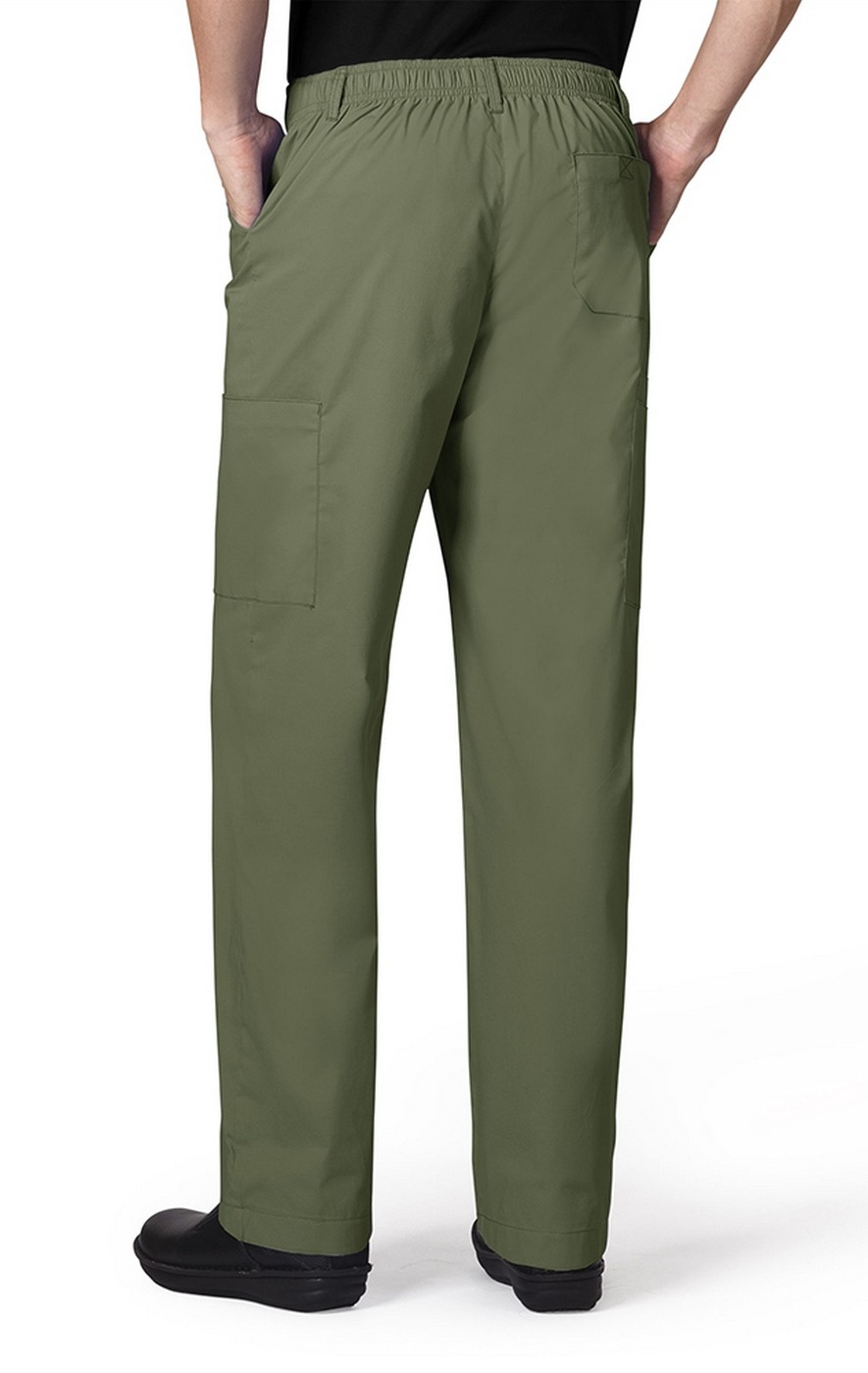Straight leg fit with endless utility features. Five belt loops at waist. Men's fully constructed waist with functional fly with button closure, full inner drawstring, back elastic.