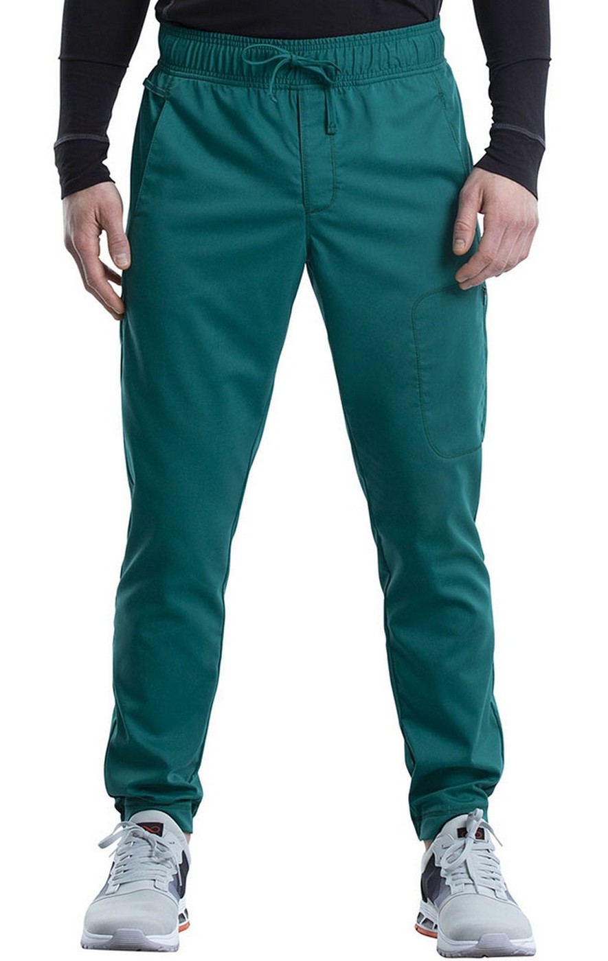 A natural rise Men's Modern fit jogger pant features encased elastic waistband and a self drawstring. Detailing includes two front angled pockets with a breathable mesh lining, a security zip cargo pocket, two back patch pockets and reflective locker loop and instrument loop. Front hem is flat while back hem is encased in elastic for that active jogger look.