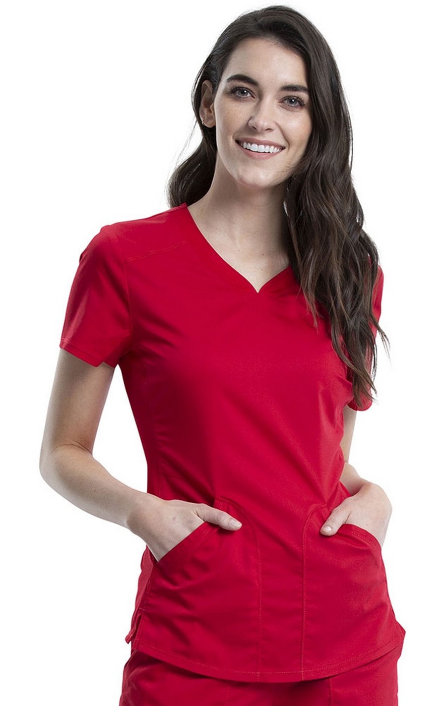 WW601 Workwear Revolution Curved V-Neck Top with Mesh Panels by Cherokee