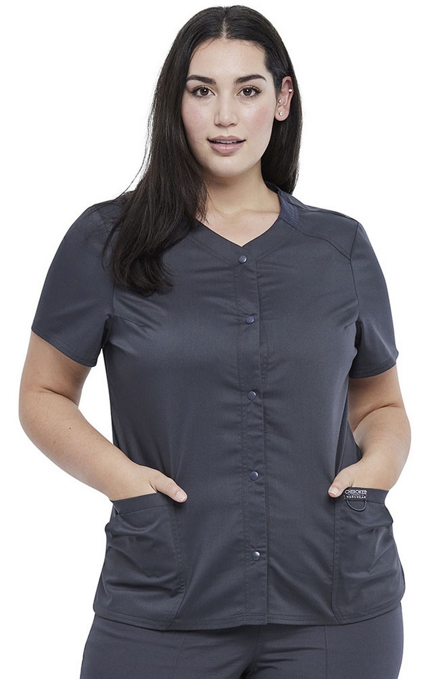 WW622 Workwear Revolution Snap Front V-Neck Top by Cherokee