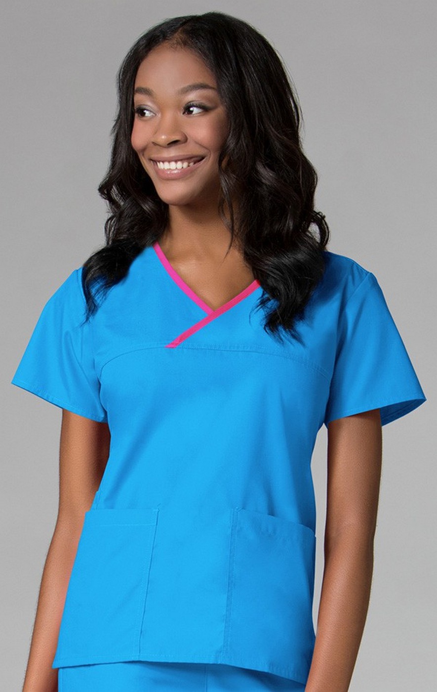 • Haut Mock emballé avec un contraste détaillant