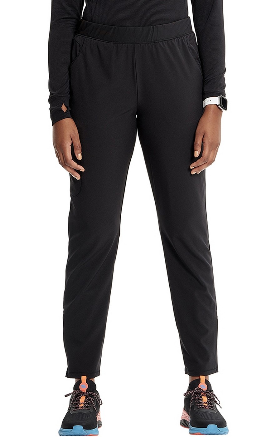 Ce pantalon à enfiler Contemporary Fit mi-hauteur est doté d’une ceinture en tricot côtelé avec un élastique intérieur et un cordon élastique plat. Il y a cinq poches : deux poches avant zippées, une poche cargo passepoilée et deux poches arrière zippées dans les coutures. Les autres caractéristiques comprennent une couture d’empiècement arrière incurvée, des sacs de poche en maille tricotée contrastée et une doublure latérale, ainsi que des fentes latérales zippées.