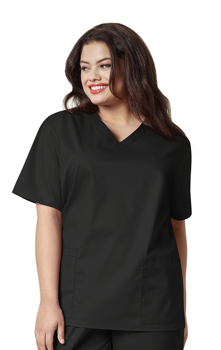 Le gommage doux et moderne au col en V de WonderWink WonderWORK 101A, de coupe moderne, est doté d'une boucle utilitaire au-dessus du coin de la poche droite. Il y a deux grandes poches plaquées, une poche supplémentaire pour le cellulaire et une poche pour stylos. Une emmanchure en forme, une taille légèrement incurvée pour une coupe décontractée et des fentes d'aération latérales complètent le style de ce haut.