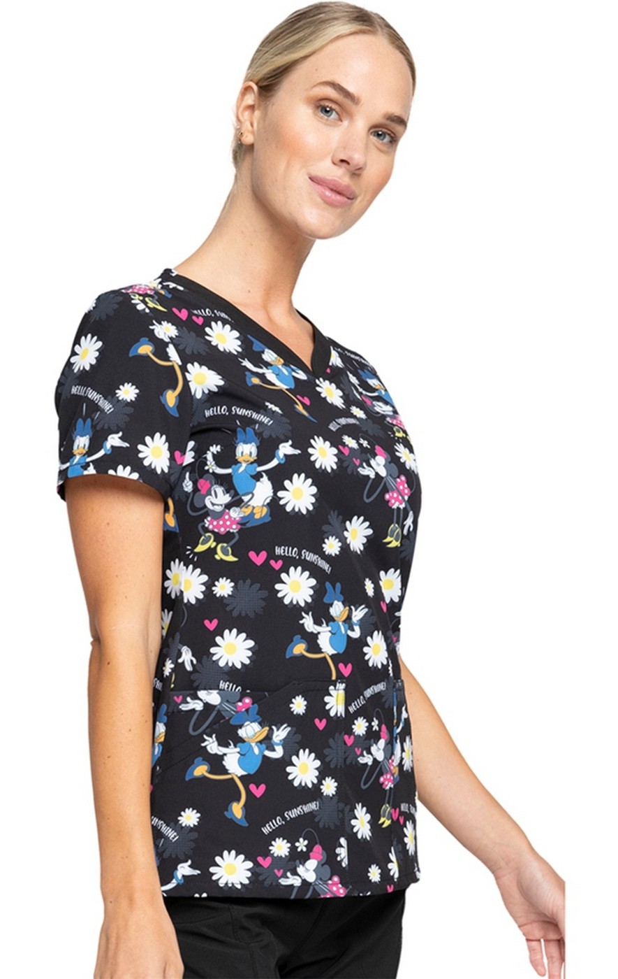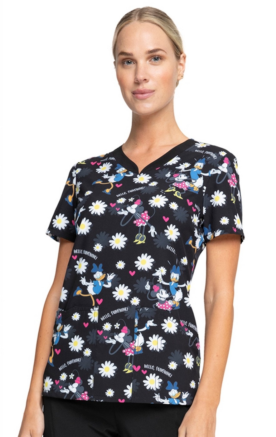 *VENTE FINALE TF671 MKUE - Haut à col en V Tooniforms sous licence Cherokee en Hello Sunshine