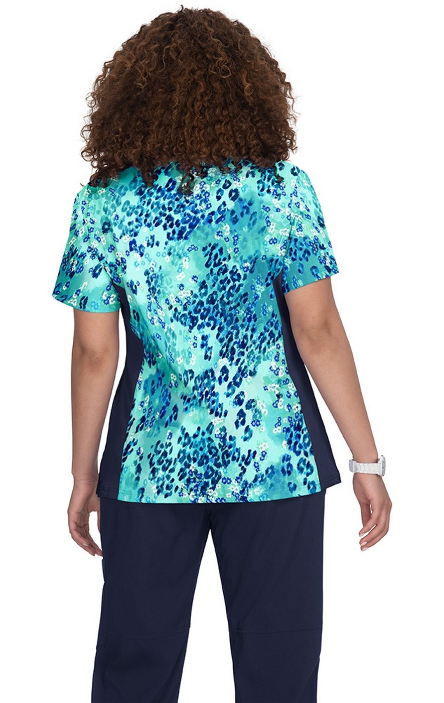 Notre top imprimé sportif et contemporain avec garniture côtelée sur les côtés.