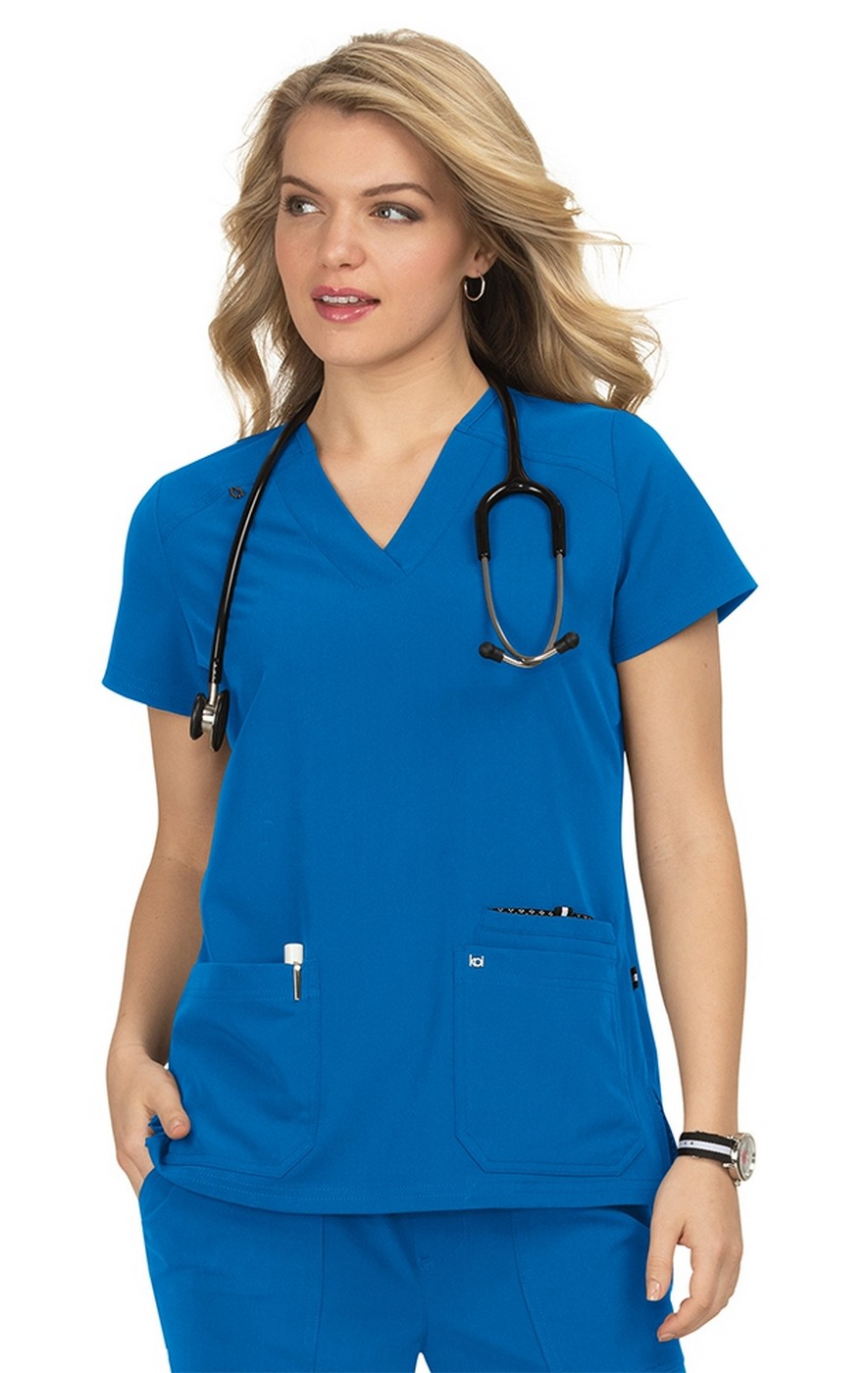 Si tu dois porter des uniformes pour travailler, ne devrais-tu pas les aimer? Il y a beaucoup à aimer de ce haut élégant avec col en V large, extensible en 4 sens et un ajustement classique moderne.