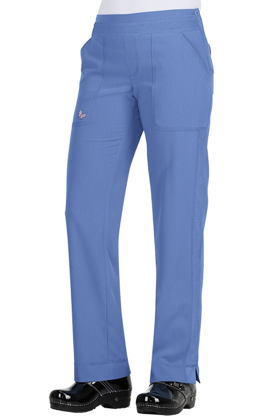 Les pantalons d’uniforme Maddi de Koi Mariposa ont tout ce que vous pourriez vouloir dans un bas d’uniforme. Ces pantalons de style yoga sont fabriqués avec une taille élastique et un tissu élastique qui s'habille avec votre journée de travail active. Quatre poches offrent de nombreuses options pour stocker des instruments et des accessoires. Une fermeture à glissière latérale, des fentes à l'ourlet et des détails floraux coupés au laser à la taille et aux panneaux latéraux arrondissent le regard.