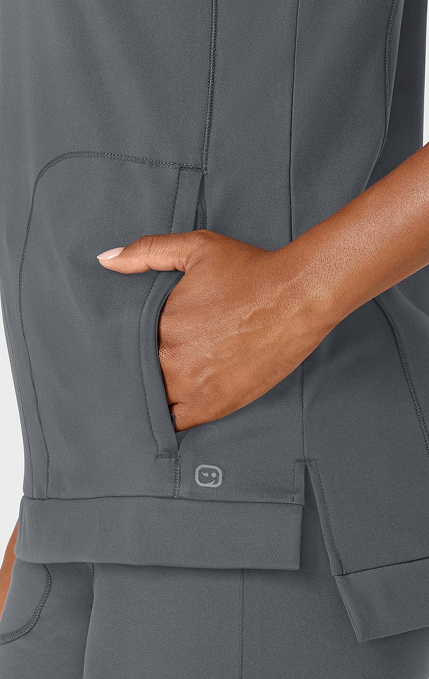 Lorsque moins est plus et plus simple est suprême, optez pour ce haut de gommage ras du cou en tricot pour femme. Son look sans chichi embrasse le confort et l’utilité afin que vous puissiez faire le travail tout en étant confiant. Les fermetures éclair se terminent par deux poches latérales pour garder l’essentiel à proximité et vous sentir en sécurité lorsque vous cochez chaque tâche et passez à la suivante. Parce que le levage et l’inclinaison font partie du travail, nos panneaux Flex-n-Reach offrent un étirement supplémentaire là où vous en avez le plus besoin. Gardez votre insigne sur la boucle à l’épaule pour un accès facile lorsque vous en avez besoin, mais en toute sécurité lorsque vous ne le faites pas. Ce haut de gommage fait partie de notre collection RENEW, fabriqué avec des matériaux écologiques qui vous donnent la tranquillité d’esprit afin que vous puissiez prendre soin de la planète tout comme vous prenez soin de vos patients. L’ajustement moderne établit l’équilibre entre le loose et le tight, vous donnant la liberté de vous déplacer avec une touche de couture.